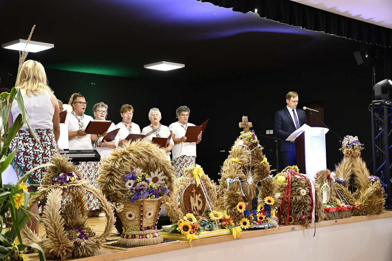Po zakończeniu ceremonii, na scenie pojawili się lokalni artyścia, a wśród nich znaleźli się grupa dzieci z Brenna z żniwnym przedstawieniem oraz chór Hejnał z reperteurem dożynkowych pieśni. Występy spotkały się z entuzjastycznym przyjęciem publiczności. Punktem kulminacyjnym był koncert zespołu country FAJNA FERAJNA, który wprowadził wszystkich w doskonały nastrój, oferując dawkę energetycznej muzyki folkowej.
