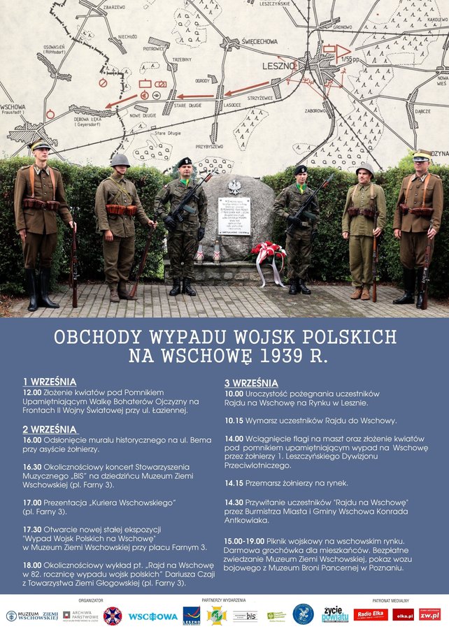 Natomiast w piątek 3 września br. żołnierze 4. Zielonogórskiego Pułku Przeciwlotniczego oraz 12 Wielkopolskiej Brygady Obrony Terytorialnej przemaszerują z Leszna do Wschowy, odwzorowując przebieg trasy, jaką we wrześniu 1939 roku przeszli polscy wojskowi. Tego dnia na rynku mieszkańcy Wschowy będą m.in. mogli obejrzeć wóz pancerny wz. 34 ze zbiorów Muzeum Broni Pancernej w Poznaniu oraz zasmakować wojskowej grochówki. Swoje stoiska będą mieli również harcerze z hufca ZHP we Wschowie, członkowie wschowskiego Związku Strzeleckiego „Strzelec“, Wojskowa Komenda Uzupełnień z Leszna oraz Muzeum Ziemi Wschowskiej.