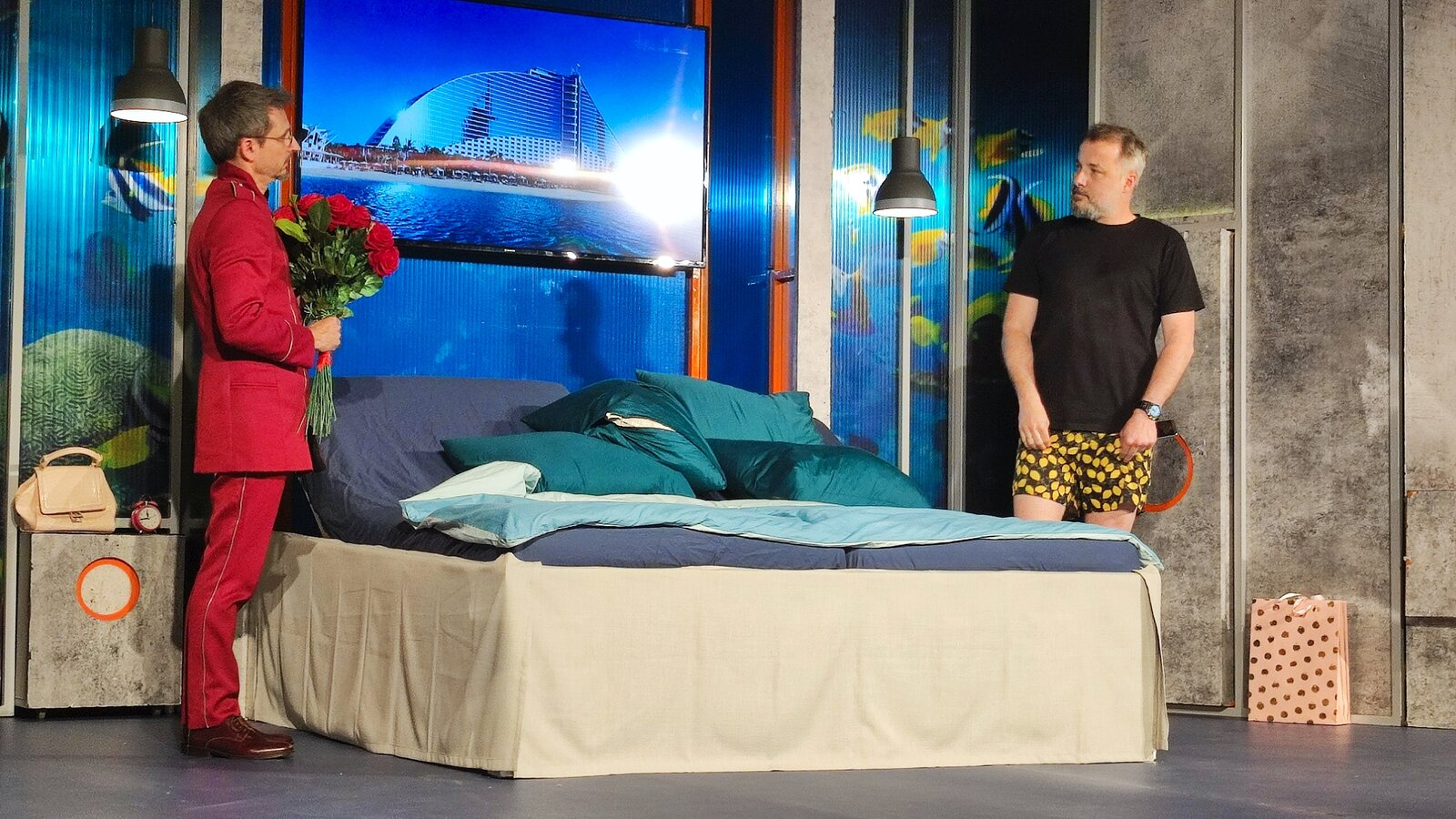W przedstawieniu Wrocławski Teatr Komedia udział wzięli aktorzy rozpoznawani na polskiej scenie filmowej i teatralnej: Małgorzata Szeptycka, Paweł Okoński, Rafał Kwietniewski oraz Radosław Kasiukiewicz.