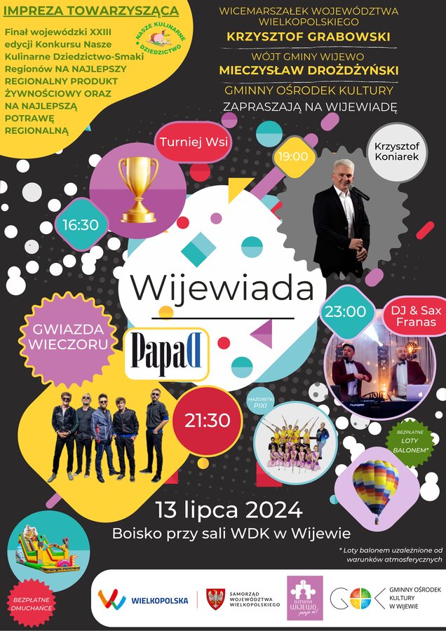W tym roku w trakcie Wijiewiady odbędzie się również impreza towarzysząca pn. KONKURS „NASZE KULINARNE DZIEDZICTWO-SMAKI REGIONÓW” - XXIII edycja.